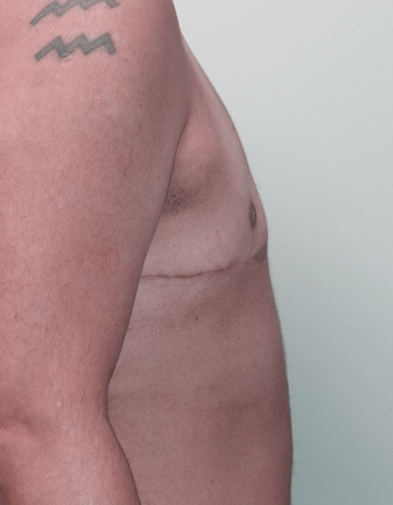 For patients with a moderate amount of excess skin or larger breasts, a “double incision” approach is used. This involves an elliptical excision of skin to allow access for breast tissue removal, leaving a horizontal scar near the lower pectoralis muscle (chest muscle) border. The nipples are removed and treated as “free nipple grafts”, which can be resized and replaced in the appropriate location on the chest wall. This approach provides the most control over nipple areola positioning and allows for ideal chest wall contouring. With both minimal incision and “double incision” approaches, liposuction may be added to further improve chest wall contour. A consultation with Dr. Chandler will involve counseling to determine the best approach for you.
